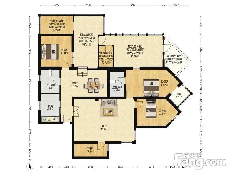 户型比较少见,有天台的三居室,大的天台已做