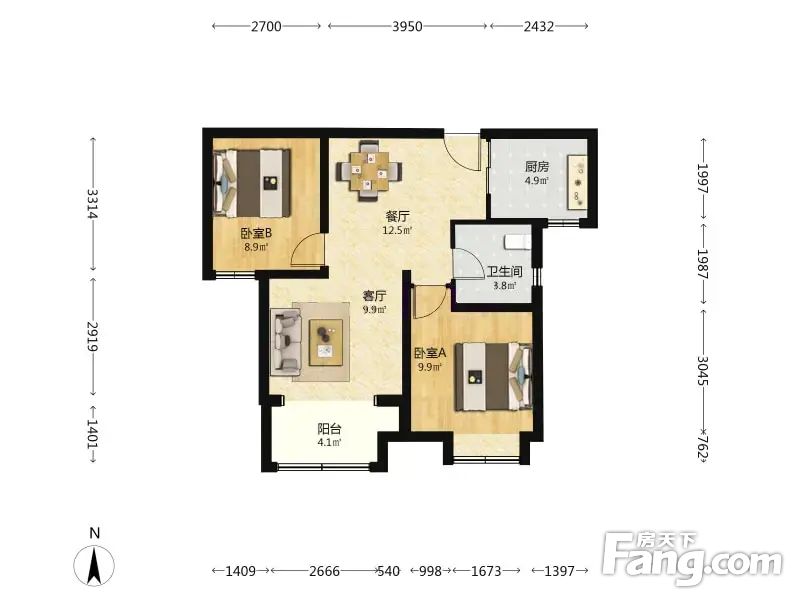 户型介绍南向两居,全明格局,客厅朝南,采光充足,视野开阔,户型方正,带阳台