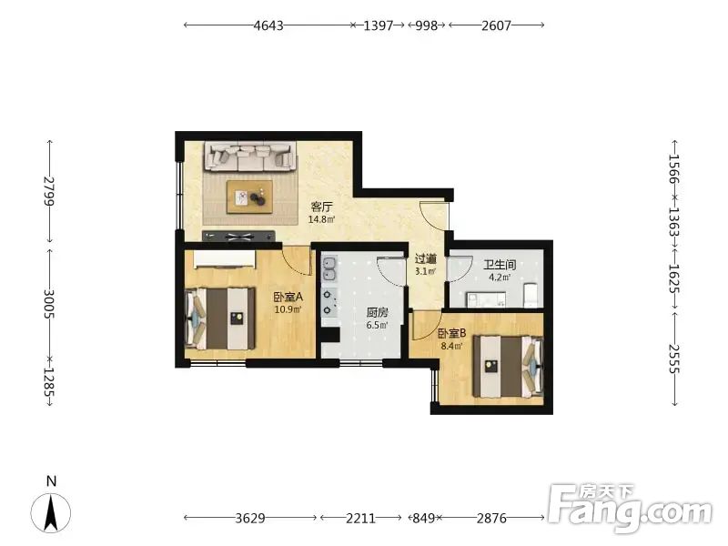 户型介绍西南向两居室,小区这种户型的两居室面积比较大,没有遮挡,采光更好。