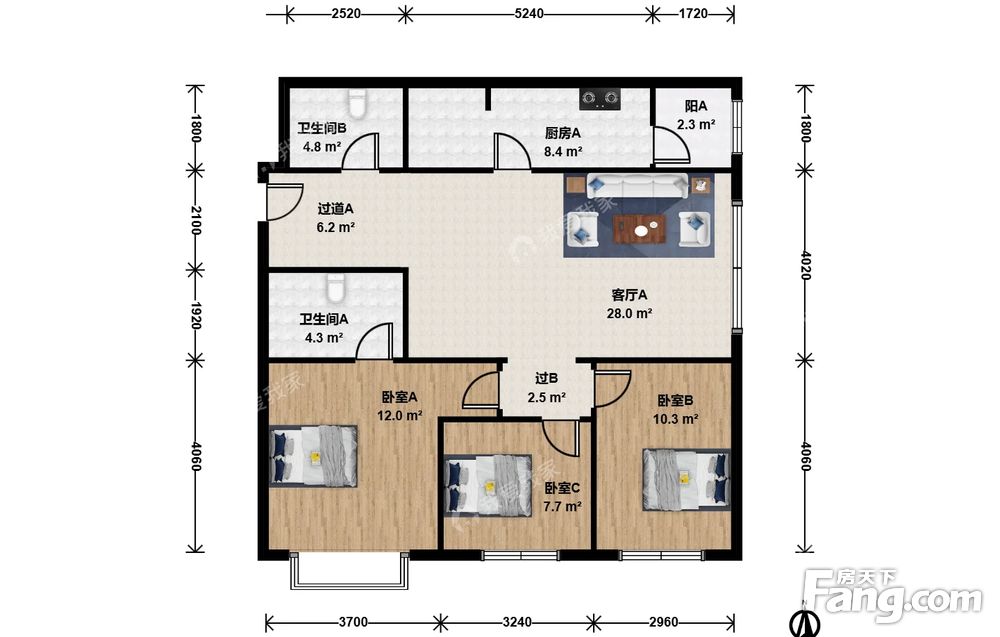 3室1厅2卫