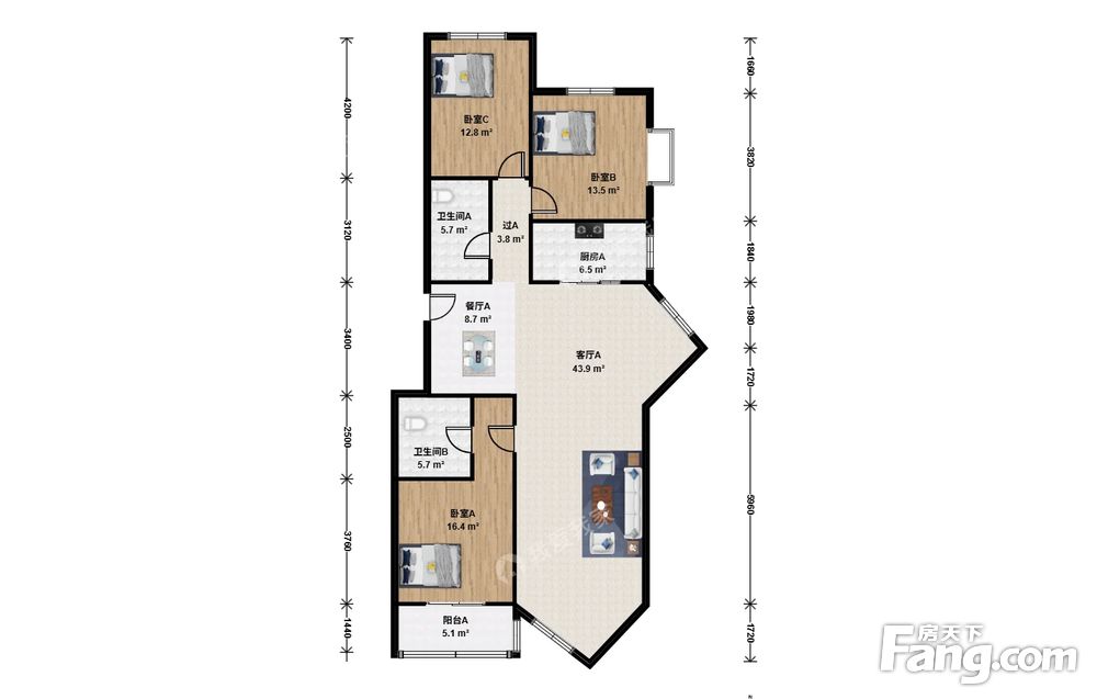 长阳·加州水郡东区菱形公寓·3室·2厅