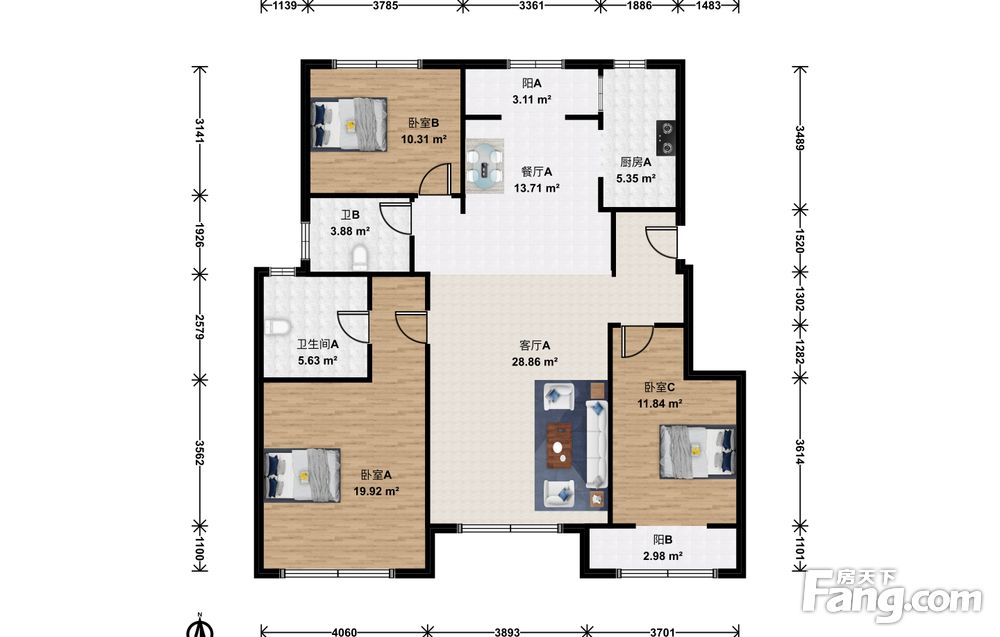 3室1厅2卫