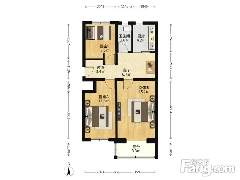 3室1厅1卫
