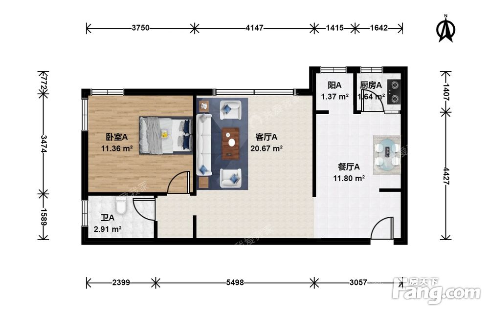 1室2厅1卫